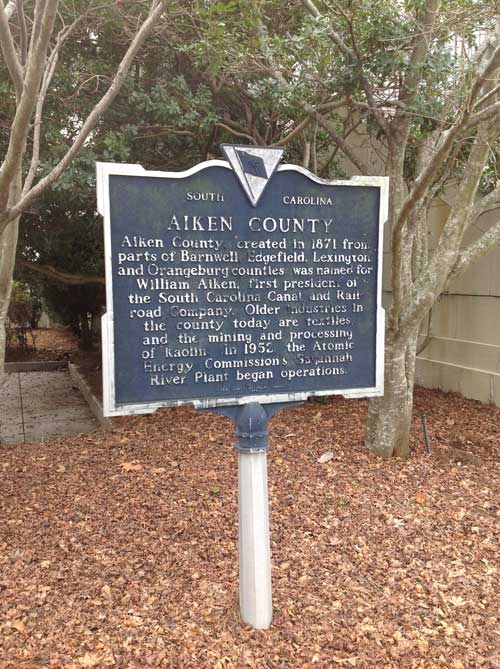 Few if any counties in America have a more varied and fascinating history than Aiken County, South Carolina. The Aiken area was once home to a Native American culture that developed the earliest known pottery in North America. Our county was traversed in 1540 by Hernando DeSoto as he searched for the fabled gold of the Cheifdom of Cofitachequi. English pioneers trod its soil soon after they founded Charles Town in 1670. It was home to the first garrison of English soldiers to patrol the Carolina interior from their base at Fort Moore near the banks of the Savannah River in 1715.